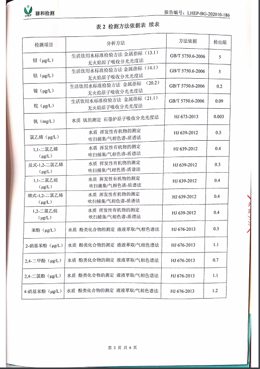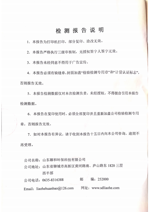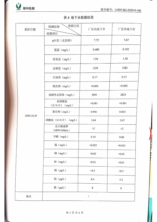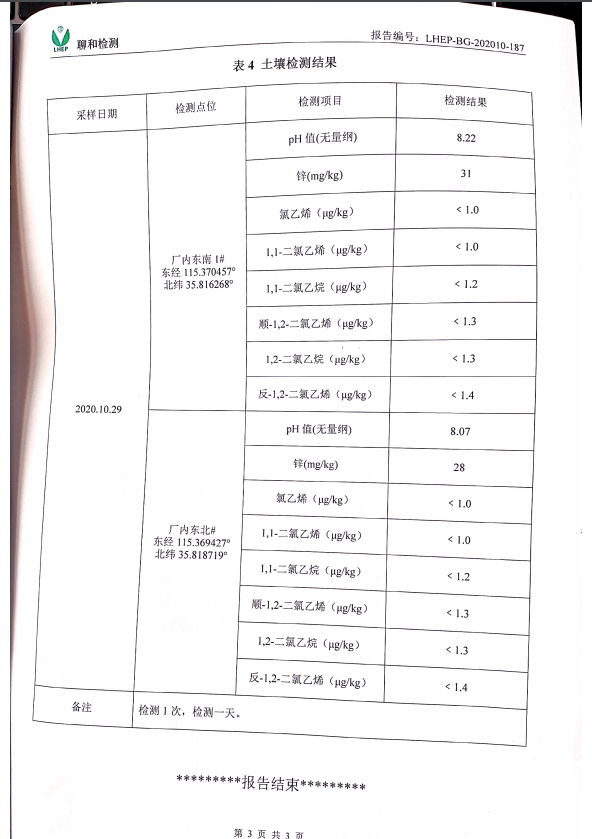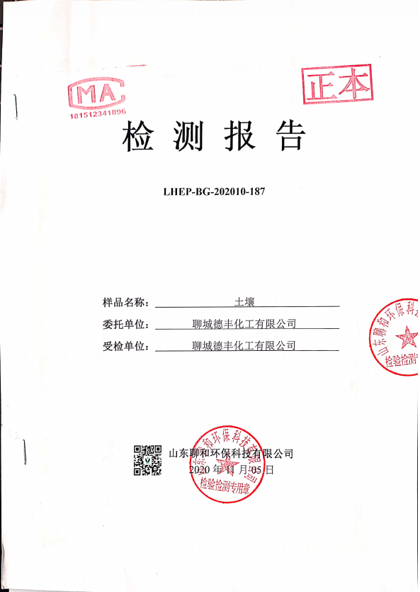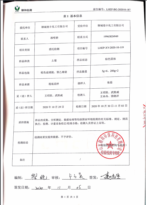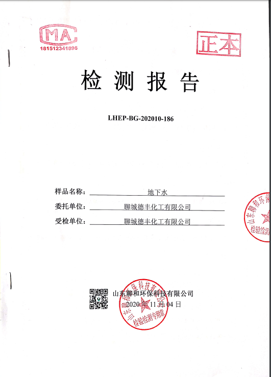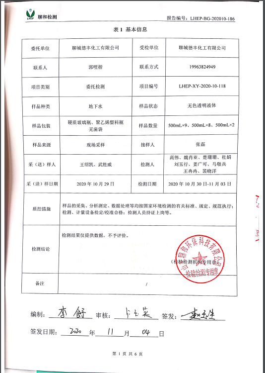 聊城德豐化工有限公司2020年下半年地下水及土壤檢測數據公示