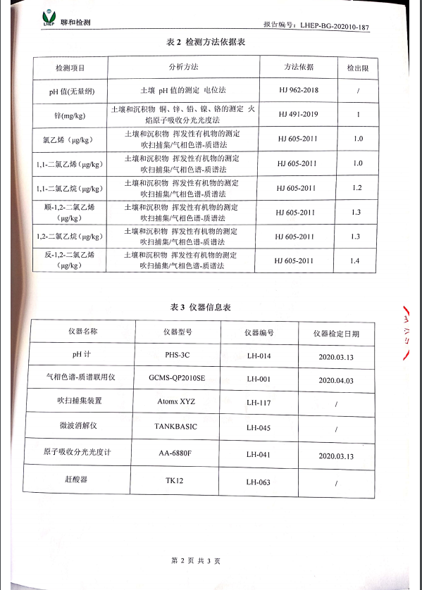 聊城隆盛化工有限公司2020年土壤檢測數據公示