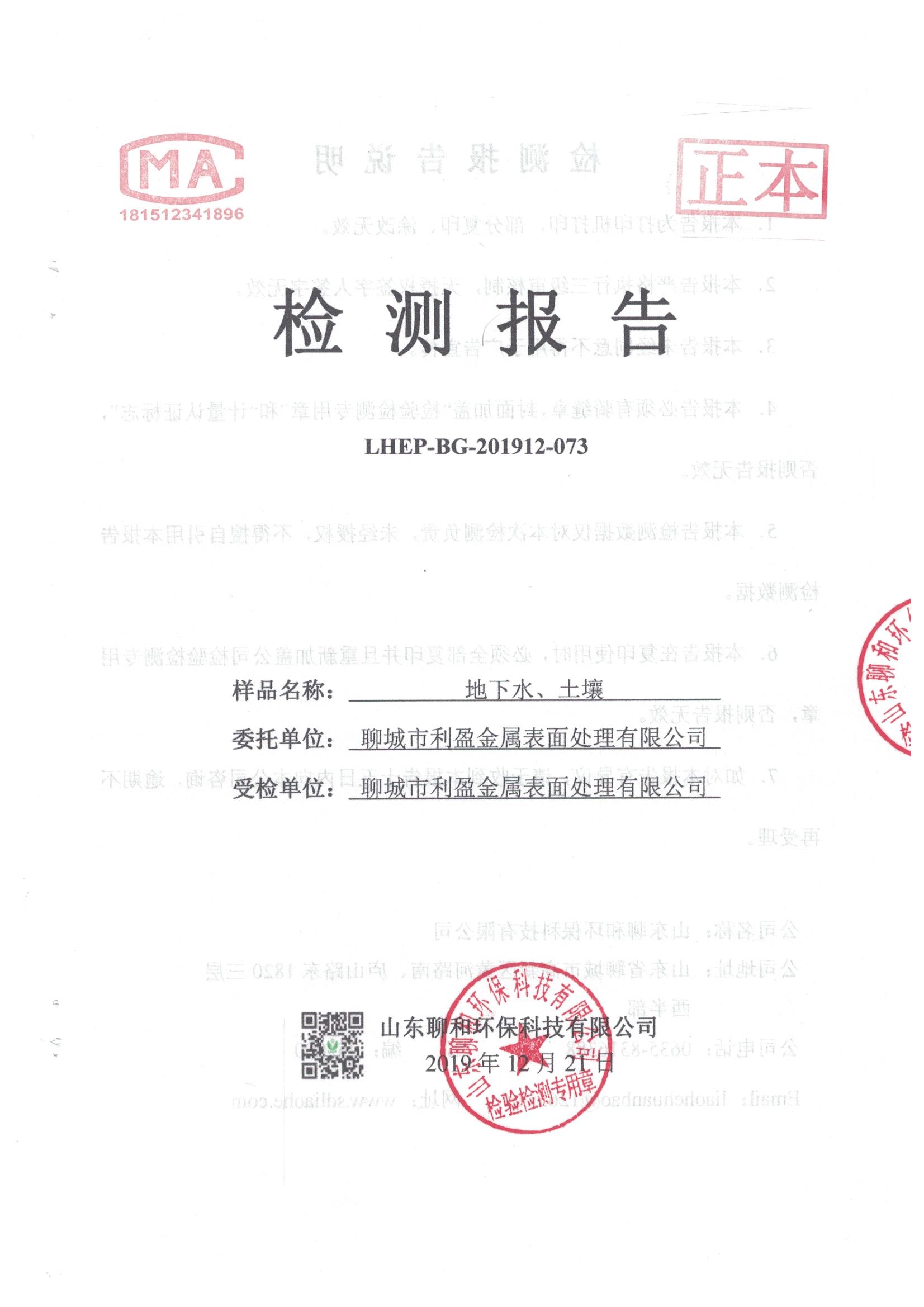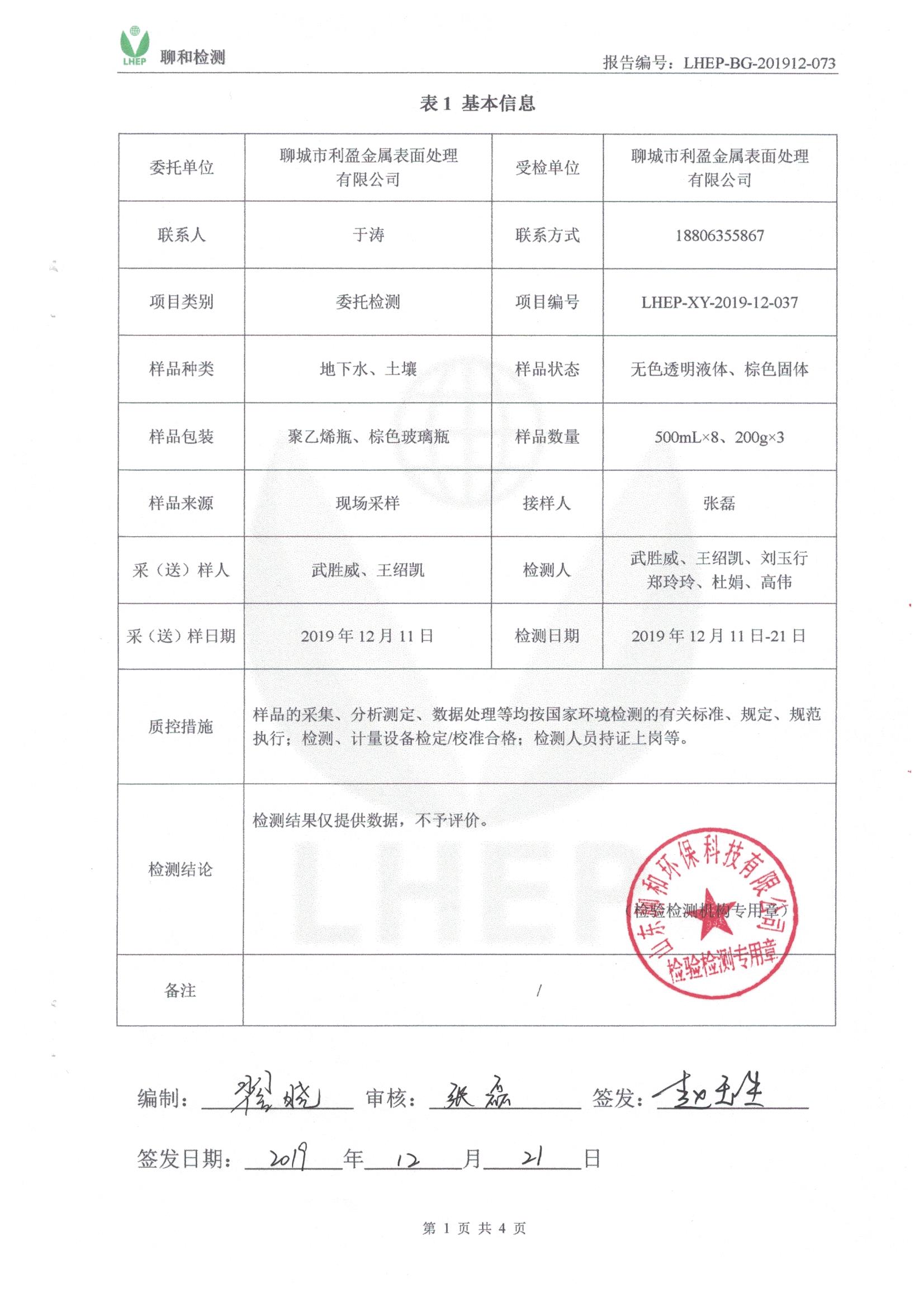 聊城市利盈金屬表面處理有限公司例行檢測報告20191221