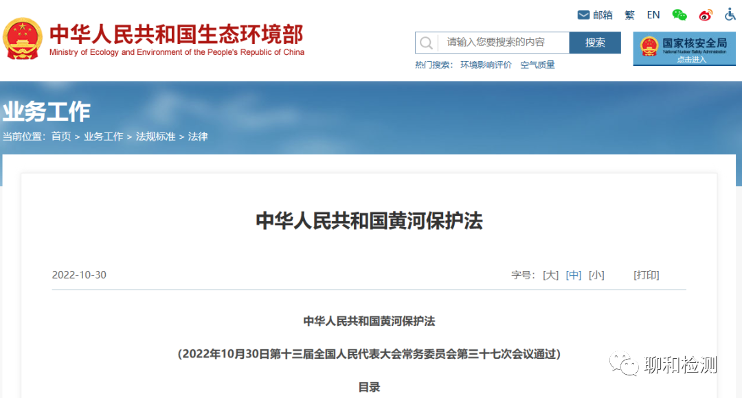2022年10月30日,中國人大網發布《中華人民共和國黃河保護法》全文,該法律將于4月1日起正式施行。