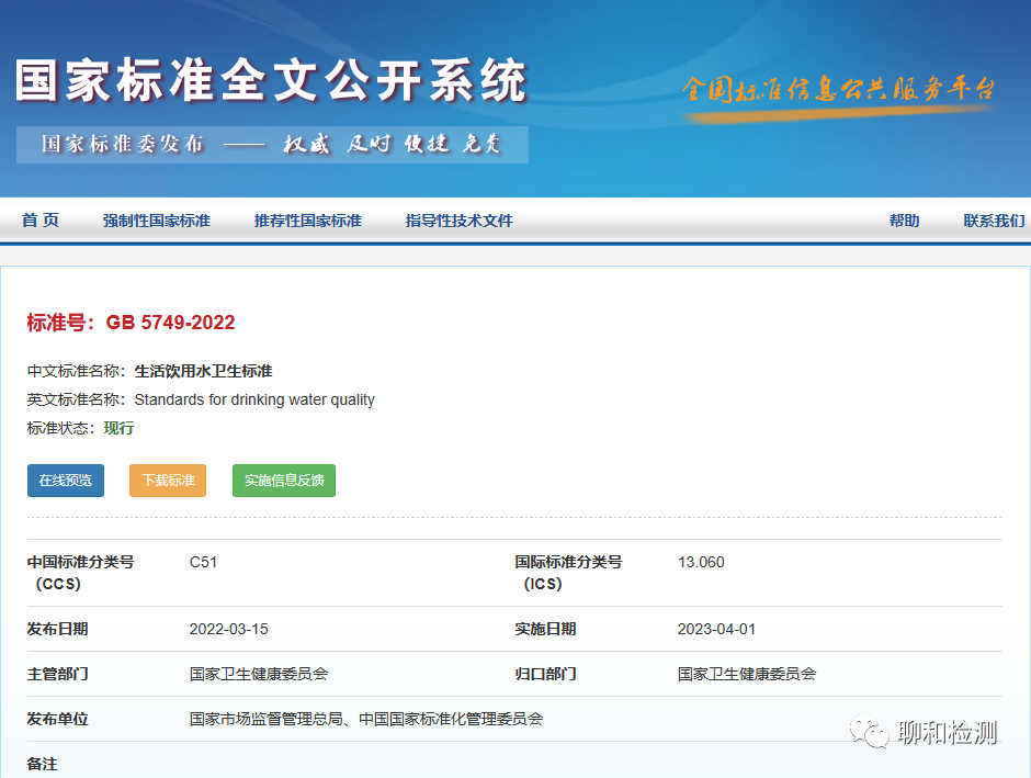 由國家衛生健康委員會歸口上報及執行,將從4月1日起正式生效。新標準著重關注飲用水安全的產品衛生要求、水質檢驗方法,適用范圍從“適用于城鄉各類集中式供水的生活飲用水,也適用于分散式供水的生活飲用水”變更為“各類生活飲用水”,實施范圍更大是本次調整的重點之一。技術層面,新標準的水質指標精簡到97項,參考指標新增27項。而新版,還更關注感官指標、消毒副產物和風險變化等內容。