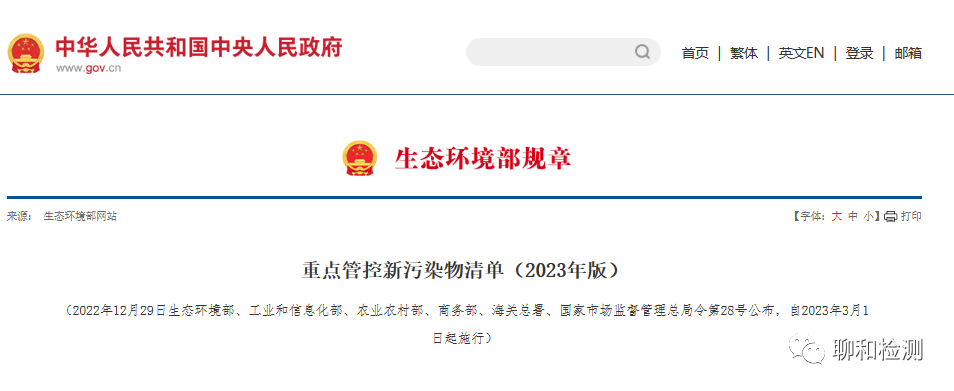 2022年底,生態環境部、工業和信息化部、農業農村部、商務部、海關總署、國家市場監督管理總局聯合發布第28號部令《重點管控新污染物清單(2023年版)》,自2023年3月1日起施行。
