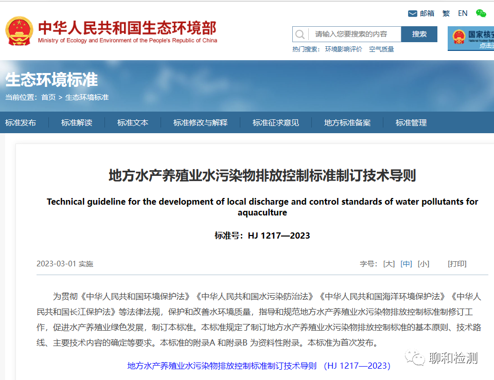 為貫徹《中華人民共和國環境保護法》《中華人民共和國水污染防治法》《中華人民共和國海洋環境保護法》,保護和改善水環境質量,指導和規范地方水產養殖業水污染物排放控制標準制修訂工作,促進水產養殖業綠色發展,生態環境部制定《地方水產養殖業水污染物排放控制標準制訂技術導則》(HJ 1217-2023)。標準規定了制訂地方水產養殖業水污染物排放控制標準的基本原則、技術路線、主要技術內容的確定等要求。2023年3月1日起實施。
