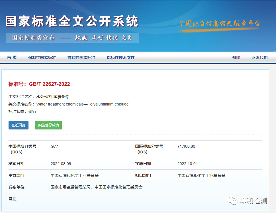 《水處理劑 聚硫氯化鋁》(HG/T 6073-2022)
