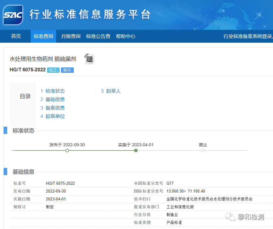 《水處理用生物藥劑 脫硫菌劑》(HG/T 6075-2022)