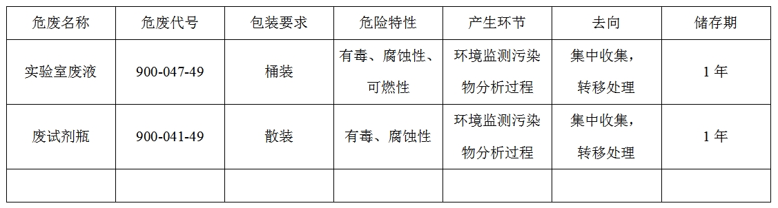 危險廢物貯存設施建筑面積: 危廢間30平方米