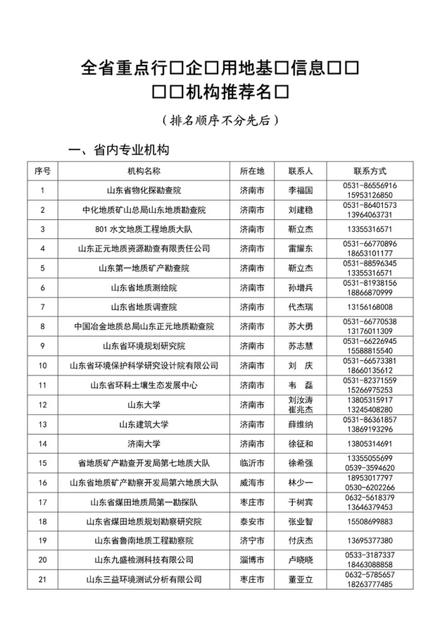 山東省重點行業企業用地基礎信息調查專業機構推薦目錄