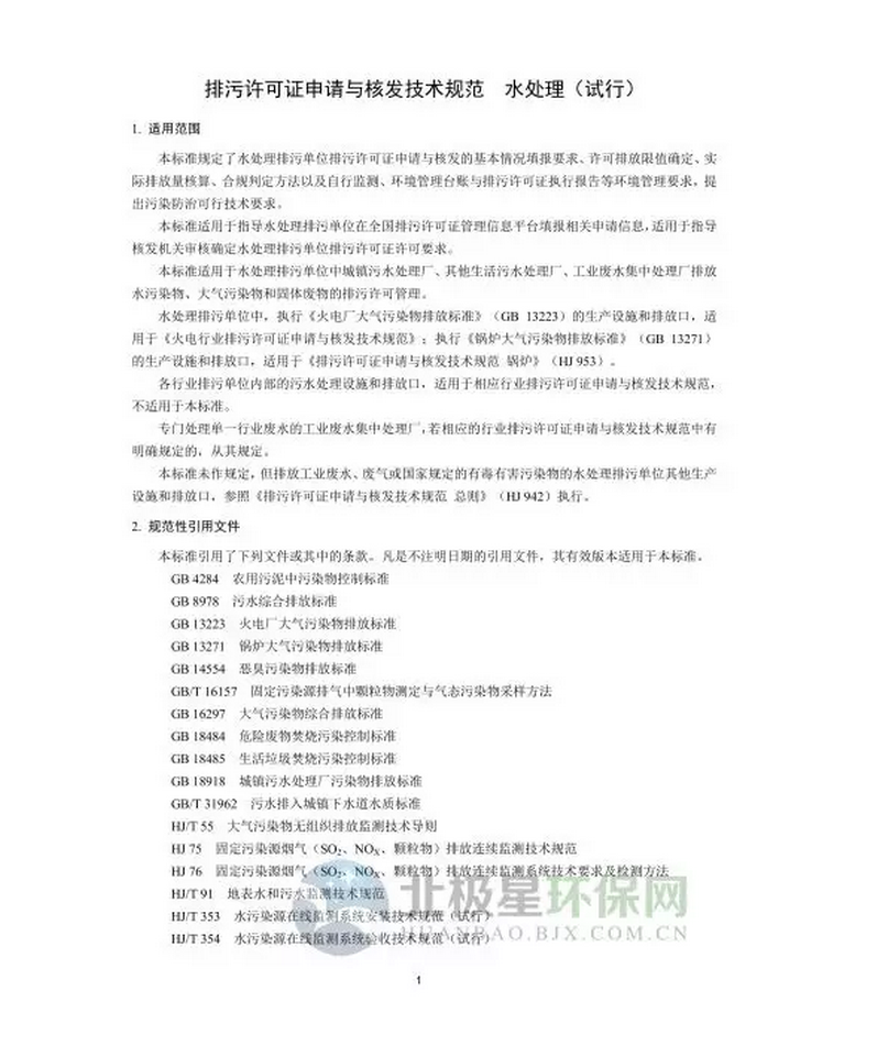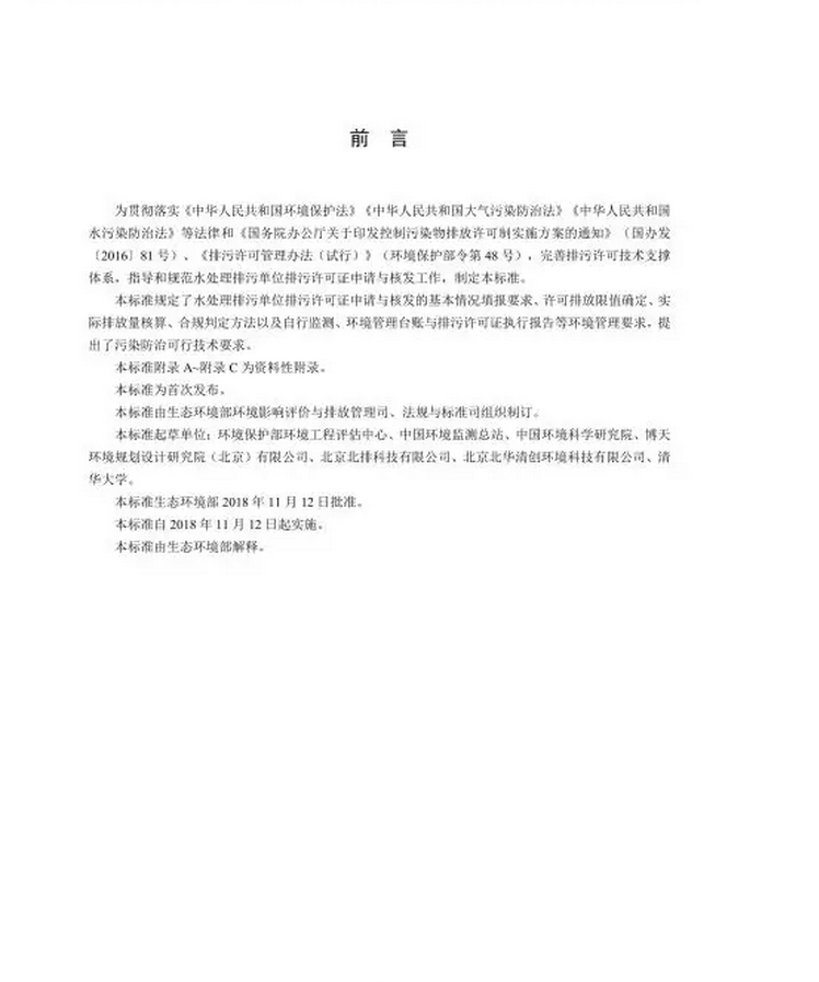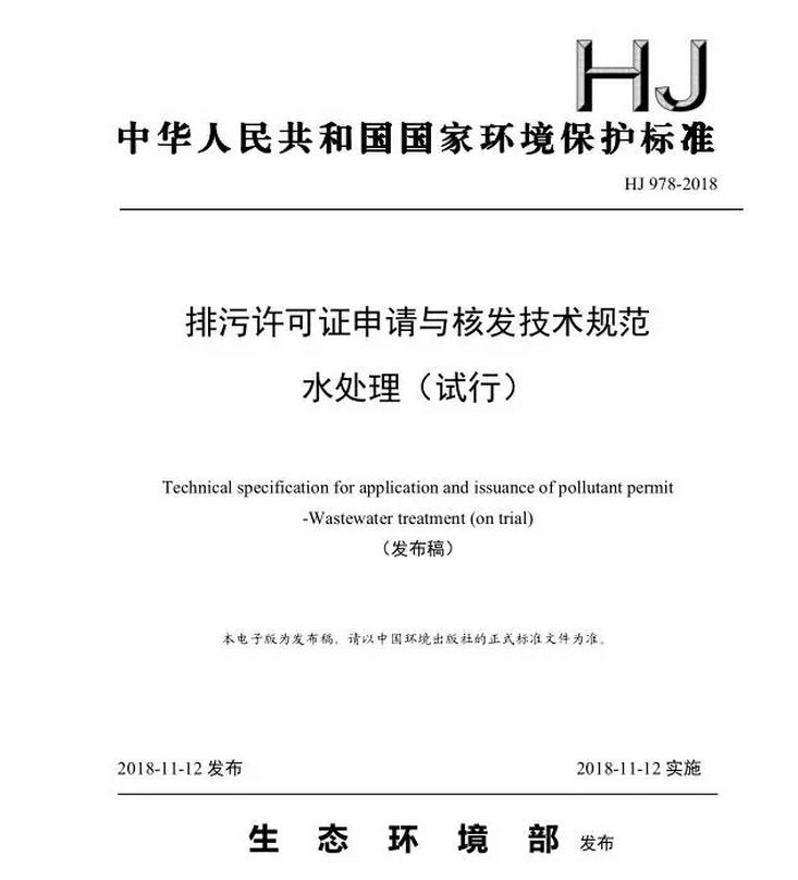 近日,生態環境部發布國家環境保護標準《排污許可證申請與核發技術規范 水處理(試行)》,詳情如下: