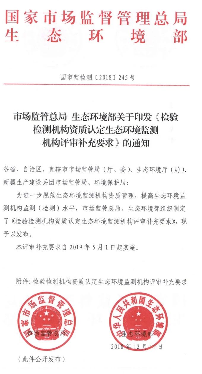 第一條 本補充要求是在檢驗檢測機構資質(zhì)認定評審通用要求的基礎上,針對生態(tài)環(huán)境監(jiān)測機構特殊性而制定,在生態(tài)環(huán)境監(jiān)測機構資質(zhì)認定評審時應與評審通用要求一并執(zhí)行。