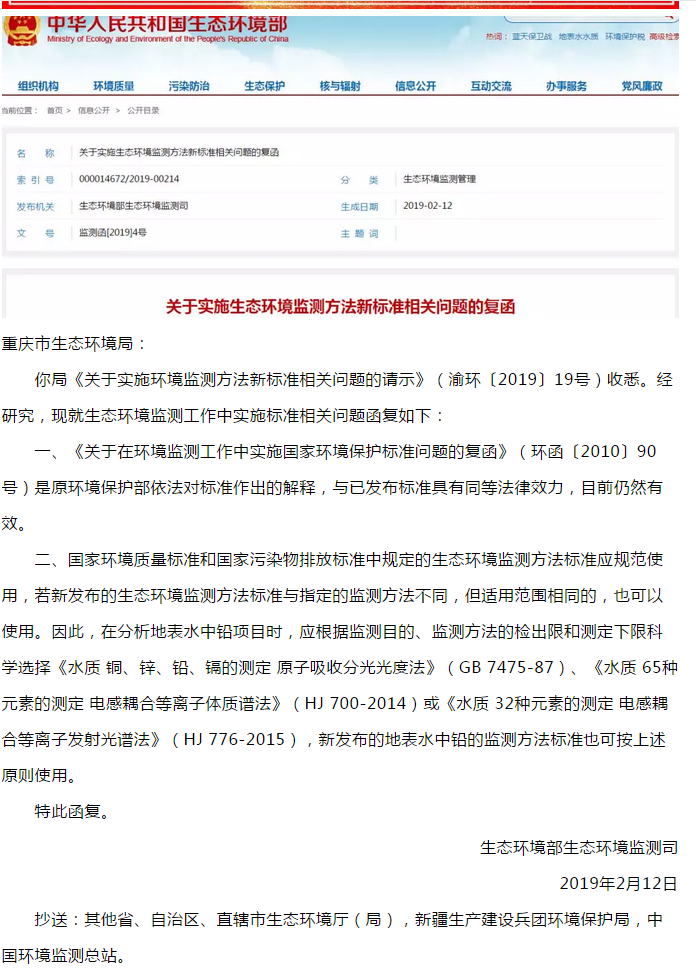 環(huán)境部:關(guān)于實施生態(tài)環(huán)境監(jiān)測方法新標準相關(guān)問題的復函